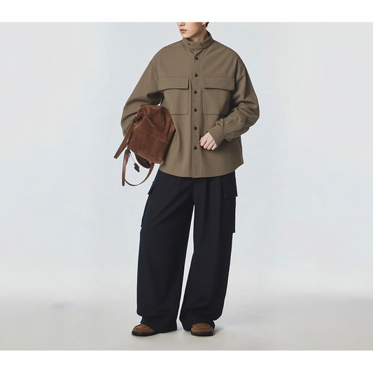 ポケット付き バンドカラー プルオーバーシャツ N1089