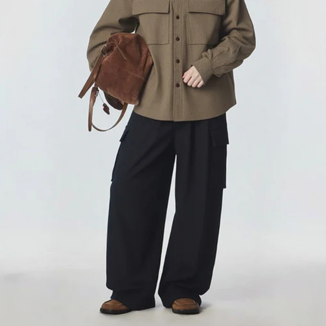 高密度ポリエステル ワイド カーゴパンツ N1074