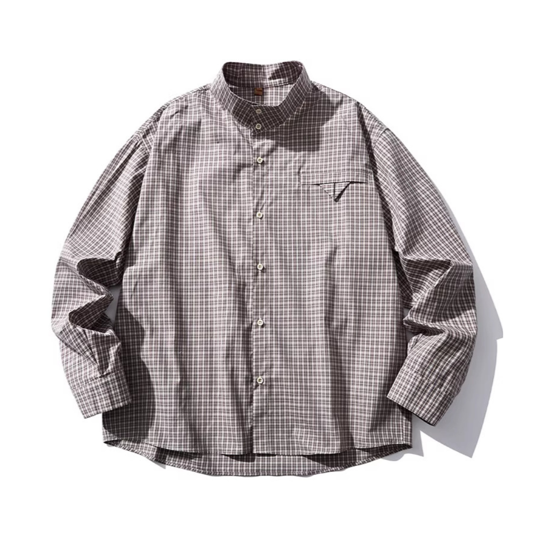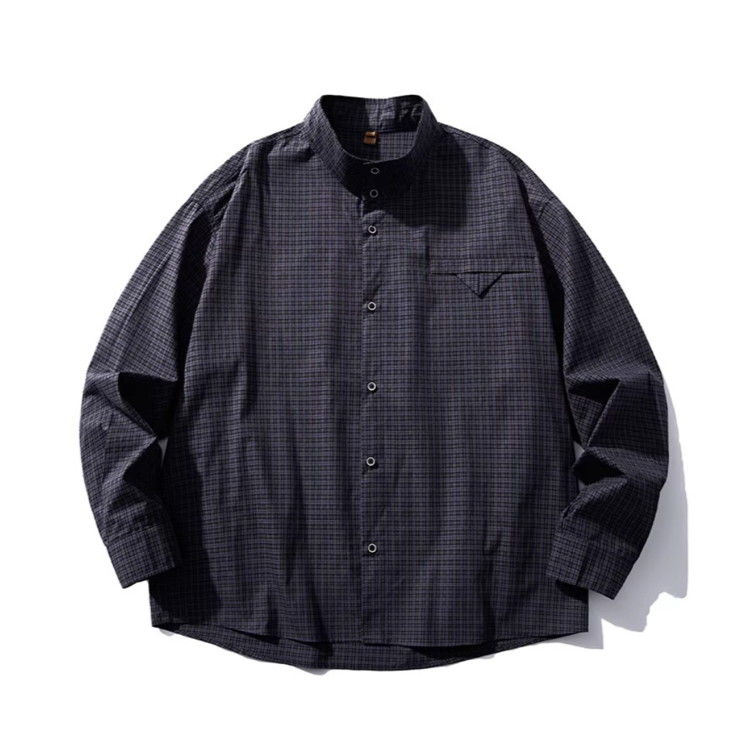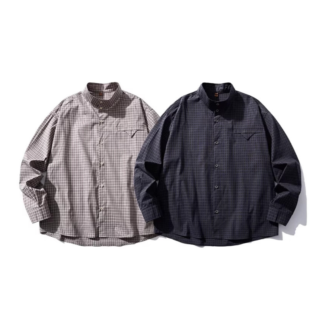 ミニマルチェック スタンドカラーシャツ N1145