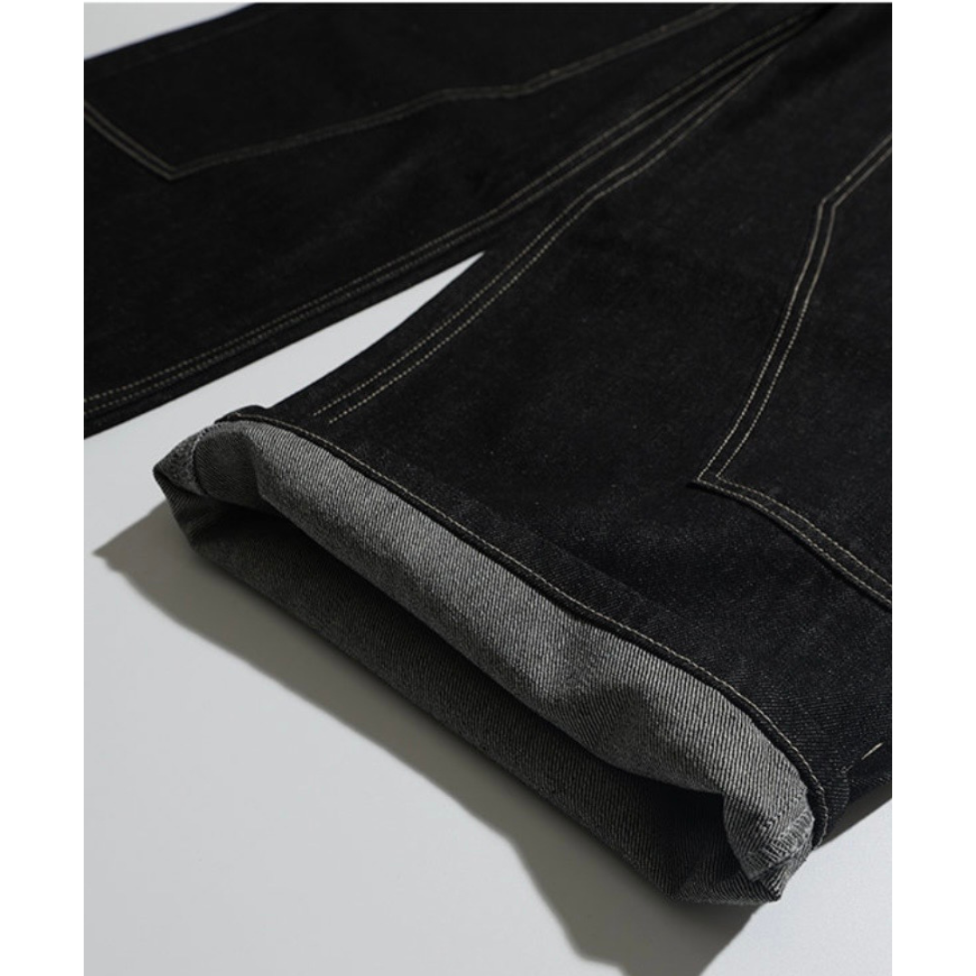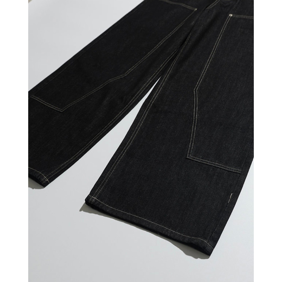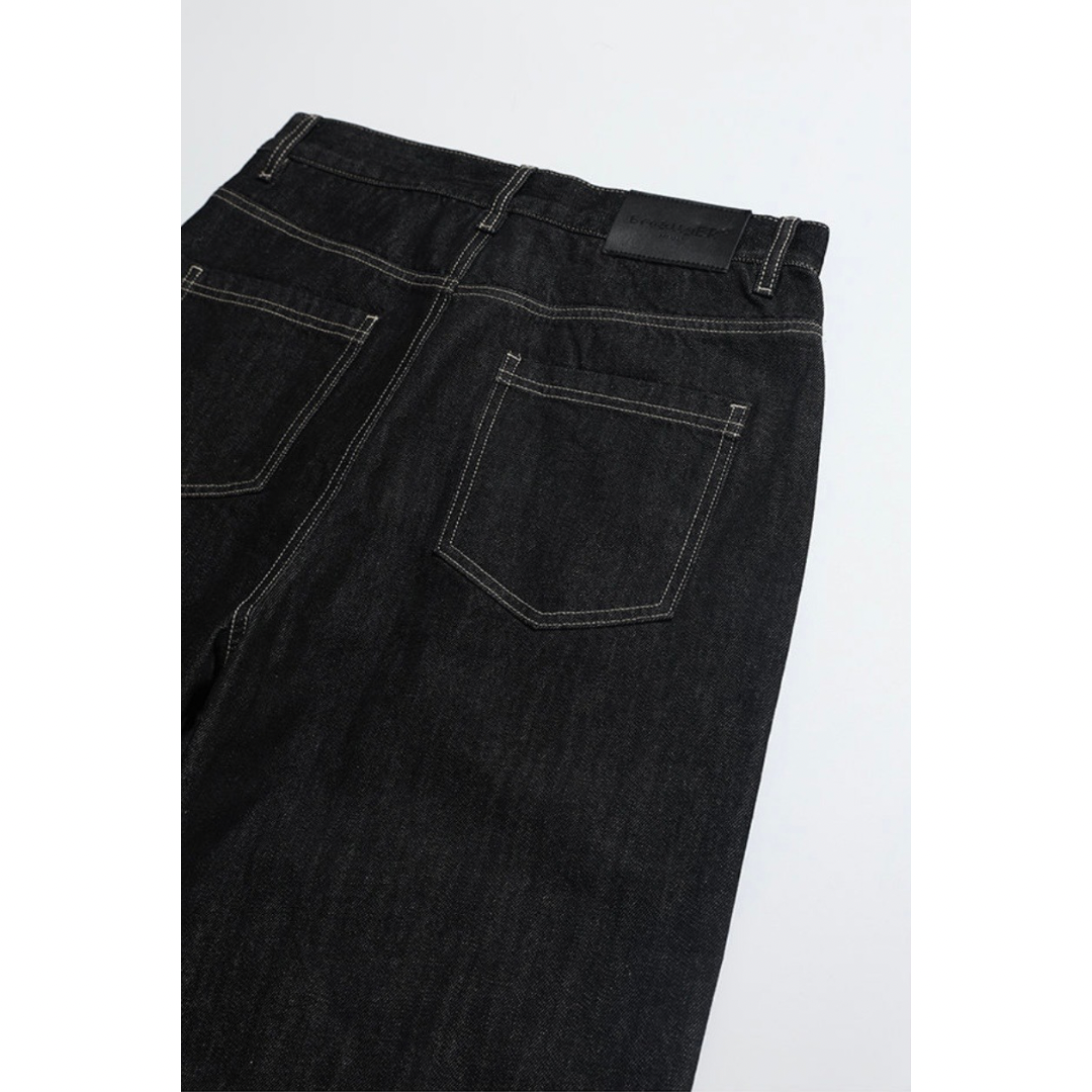 ダブルニー ブラックデニム ワイドストレートパンツ N1204