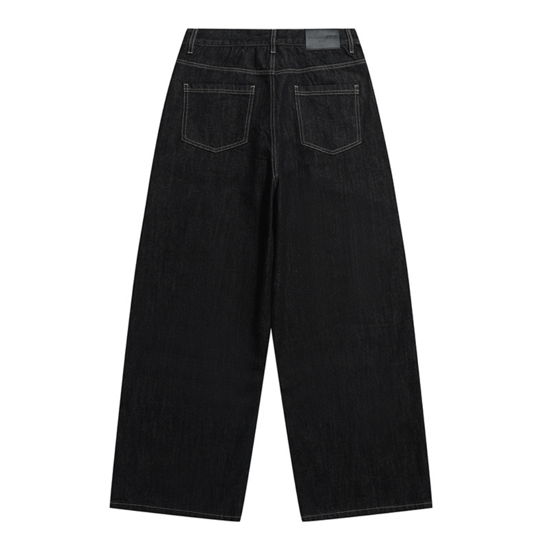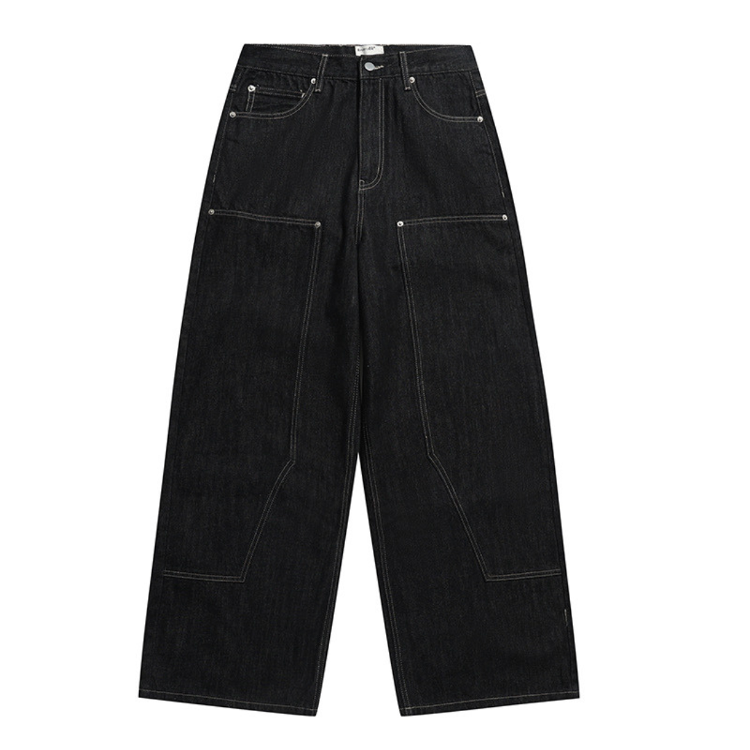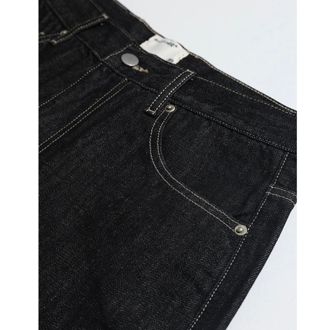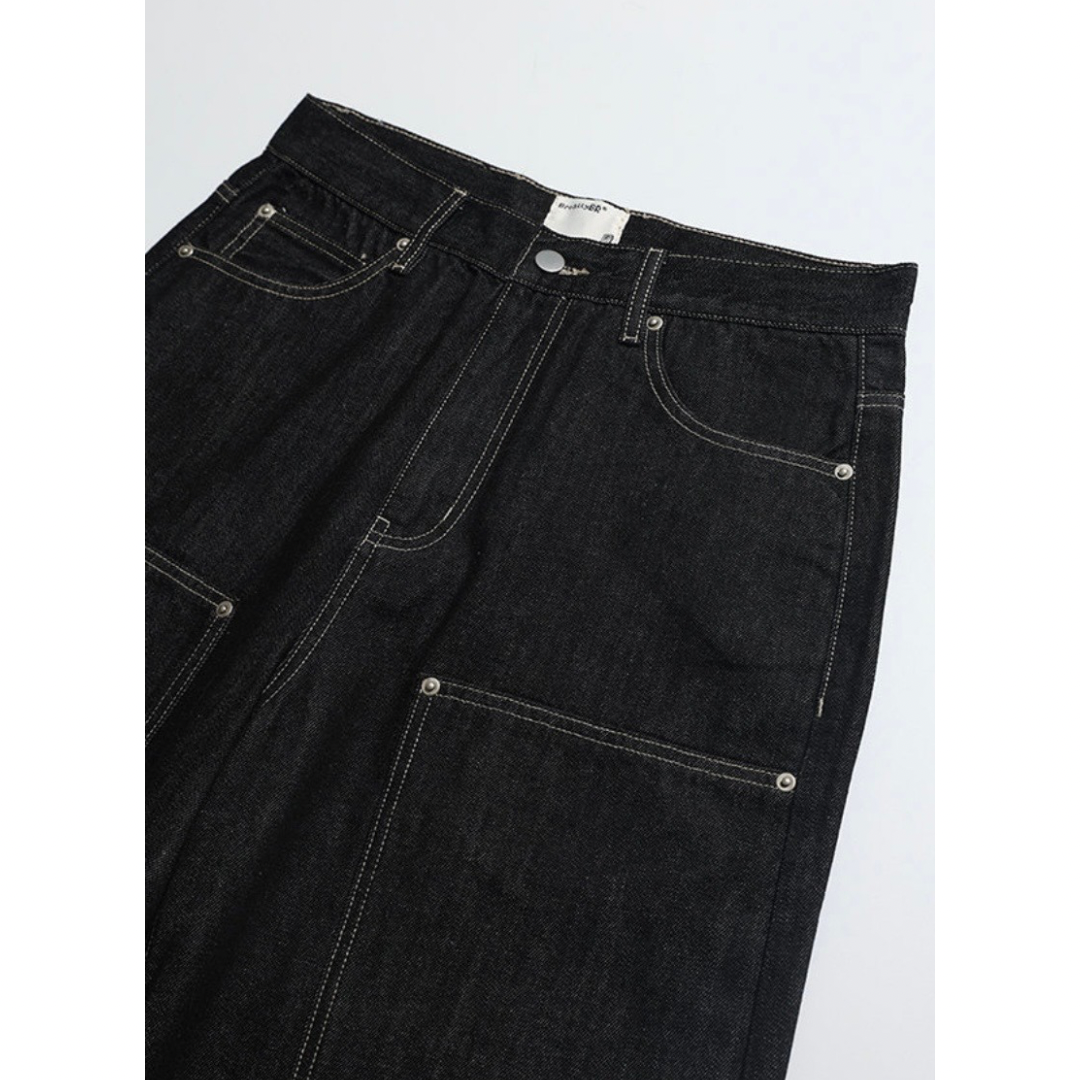 ダブルニー ブラックデニム ワイドストレートパンツ N1204
