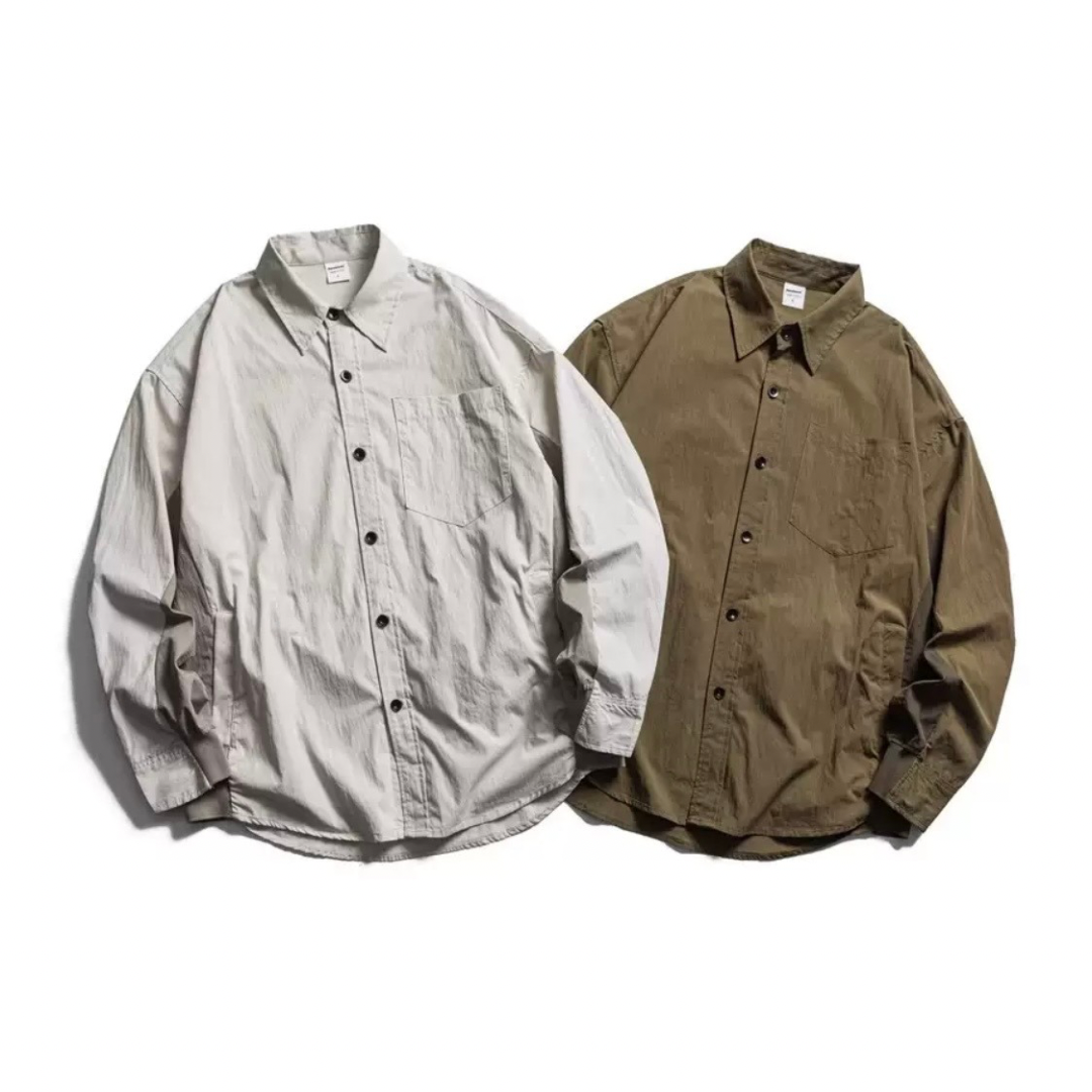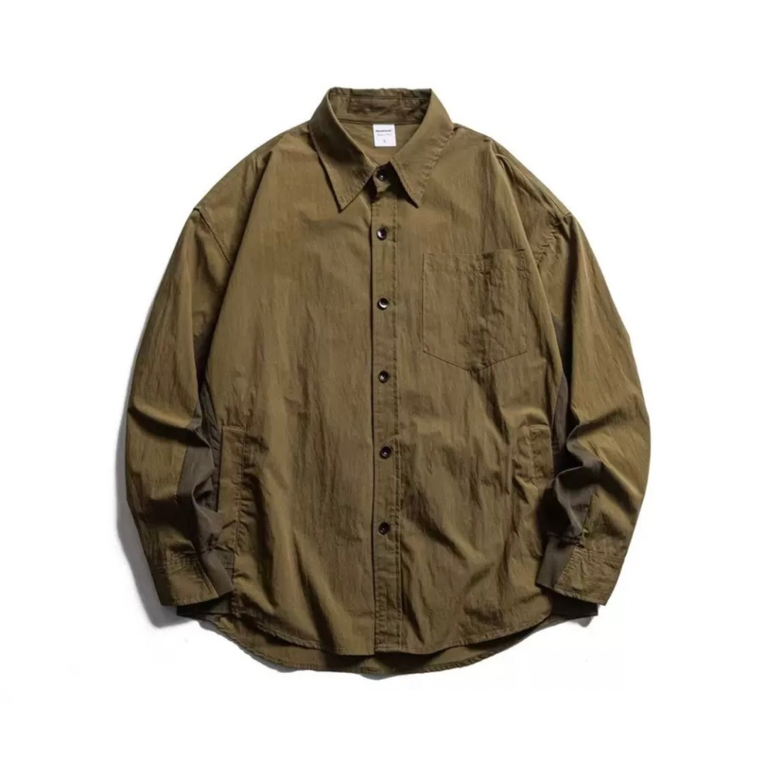 コットンナイロン バイカラー ポケット付き シャツジャケット N1235