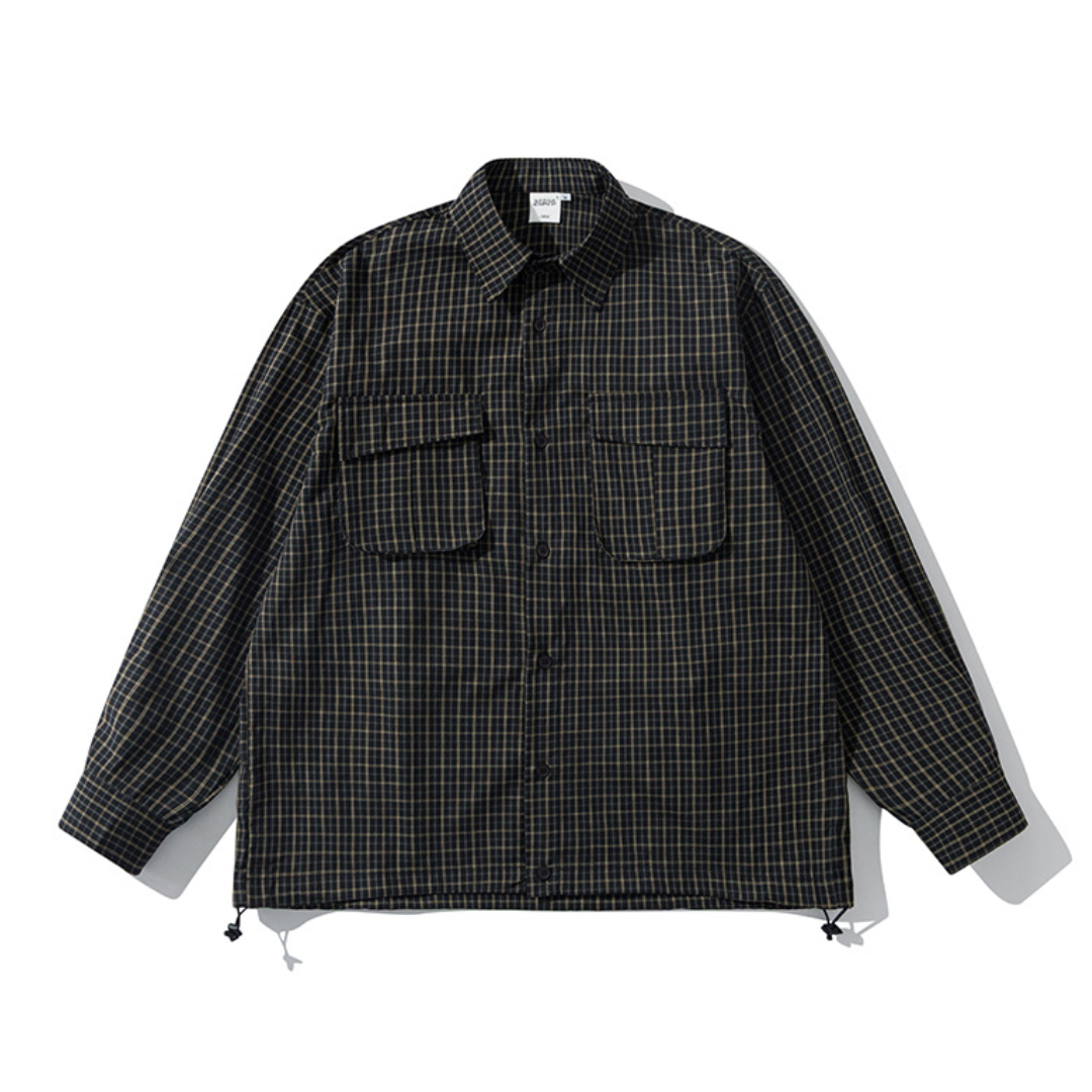 ダブルフラップ ドローコードヘム チェックシャツ N1247