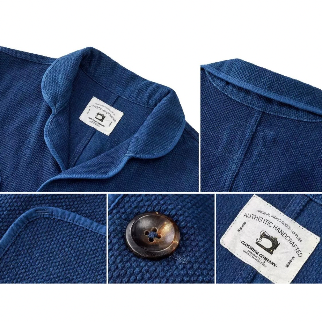 インディゴ染料め 刺し子織り カバーオール ジャケット N1323