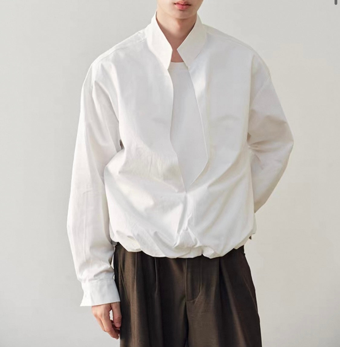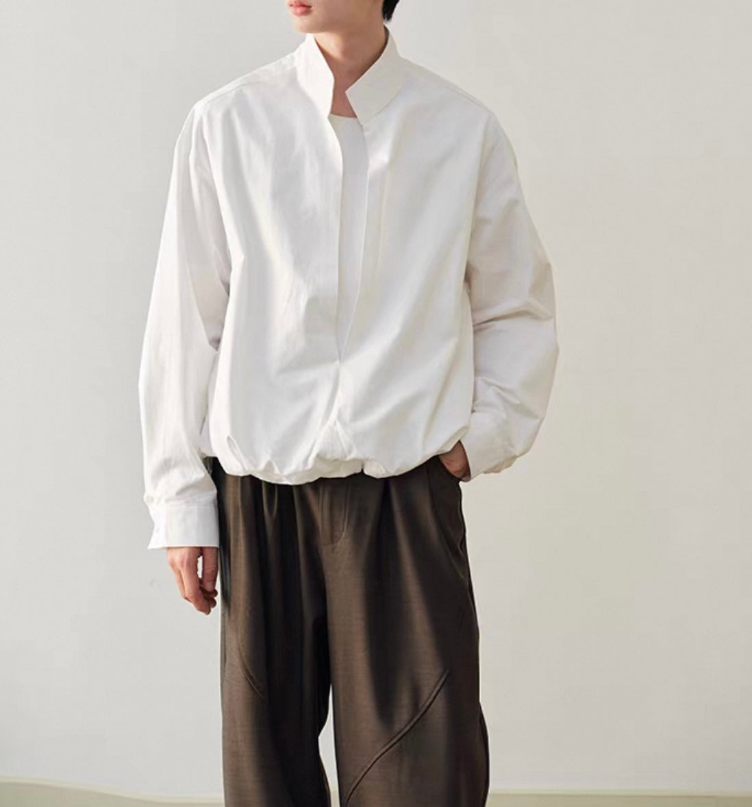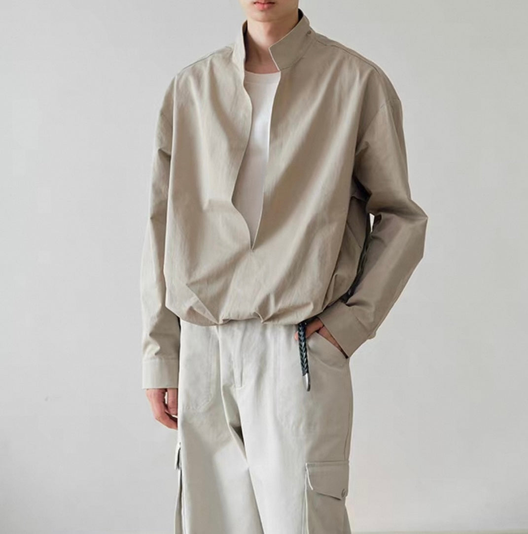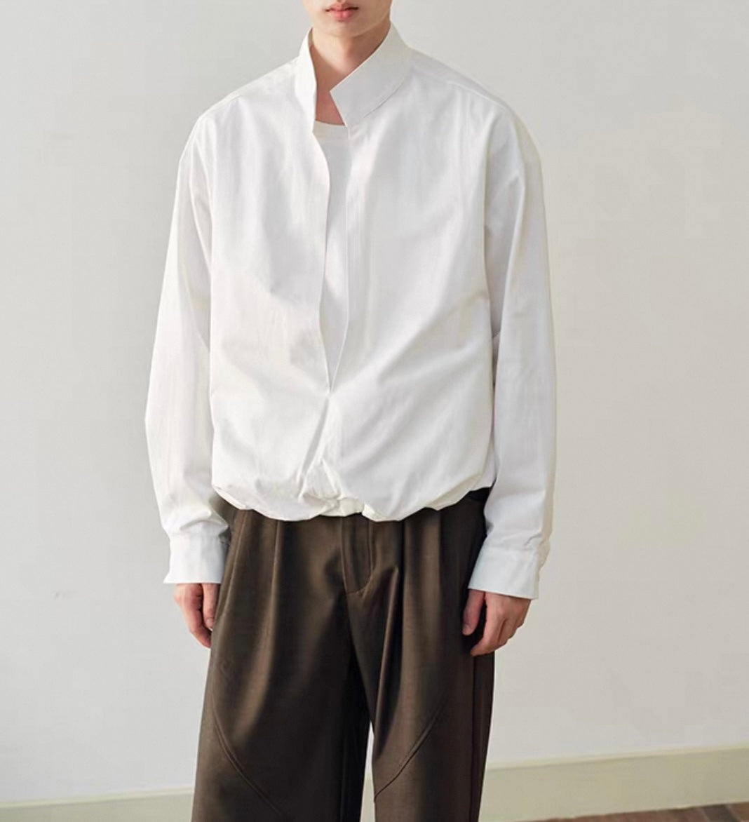 ウェストギャザー スリットネック シャツ N750