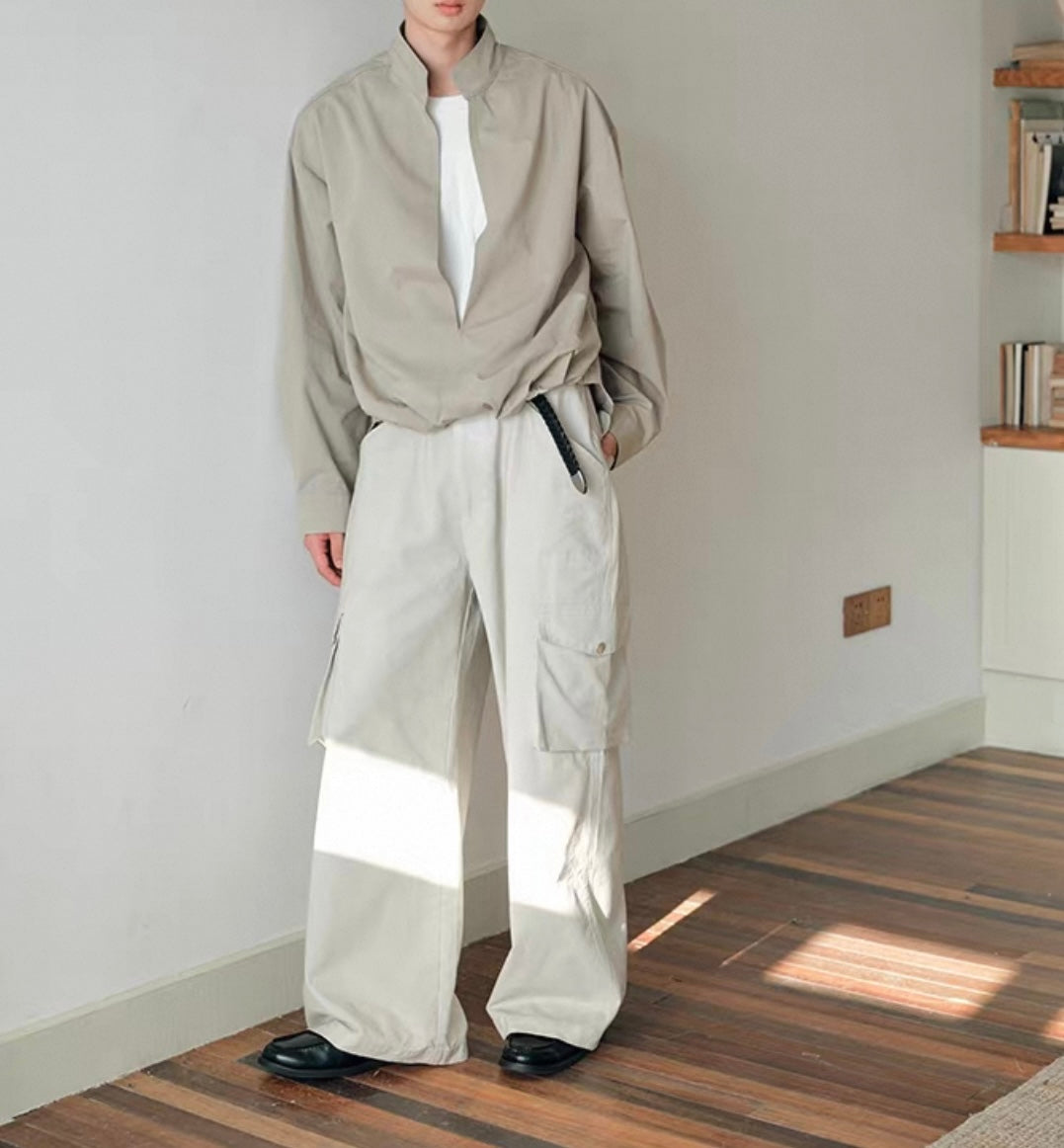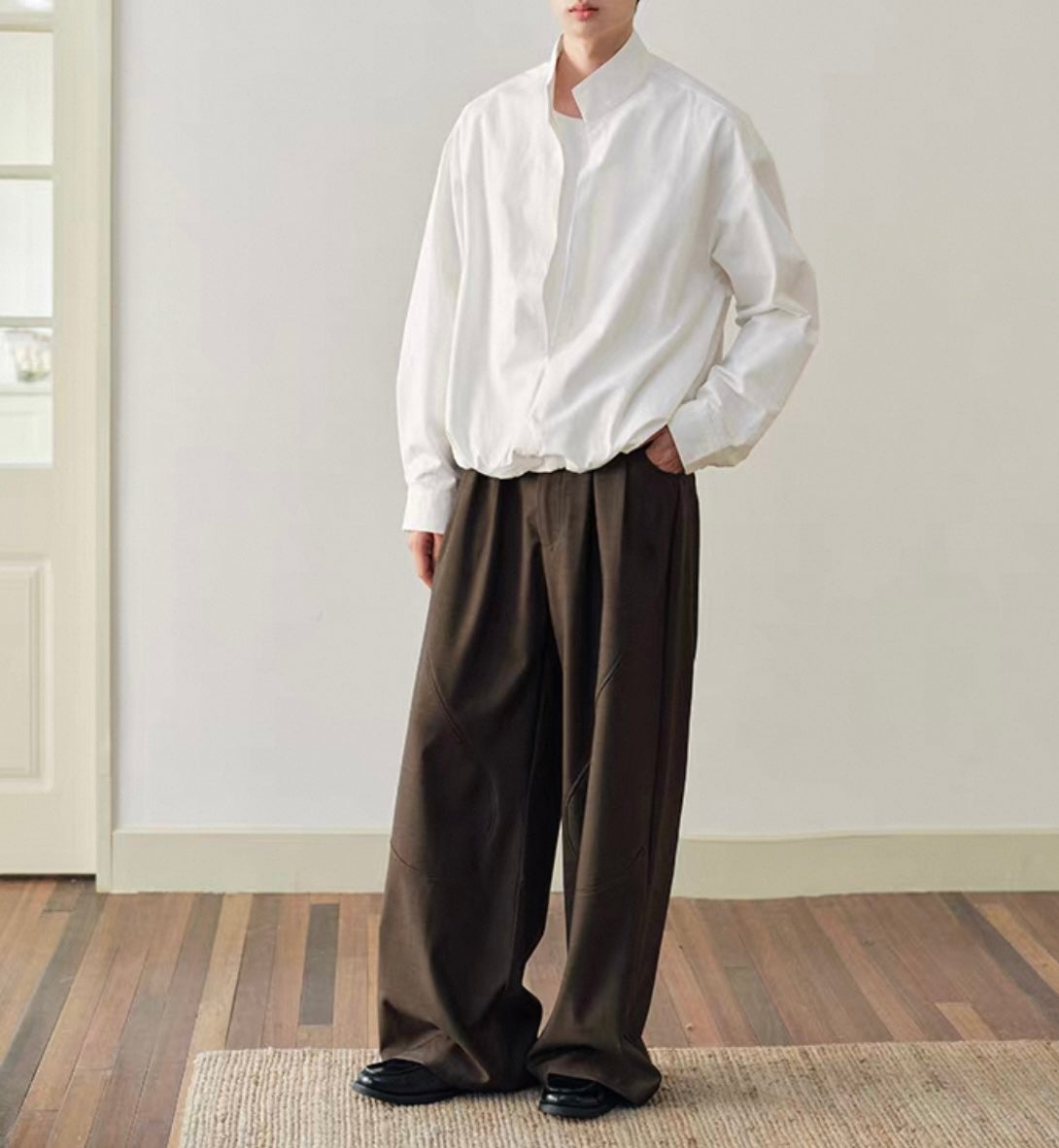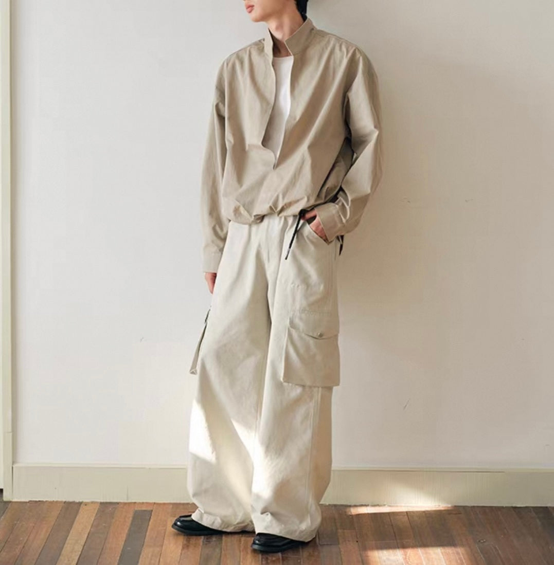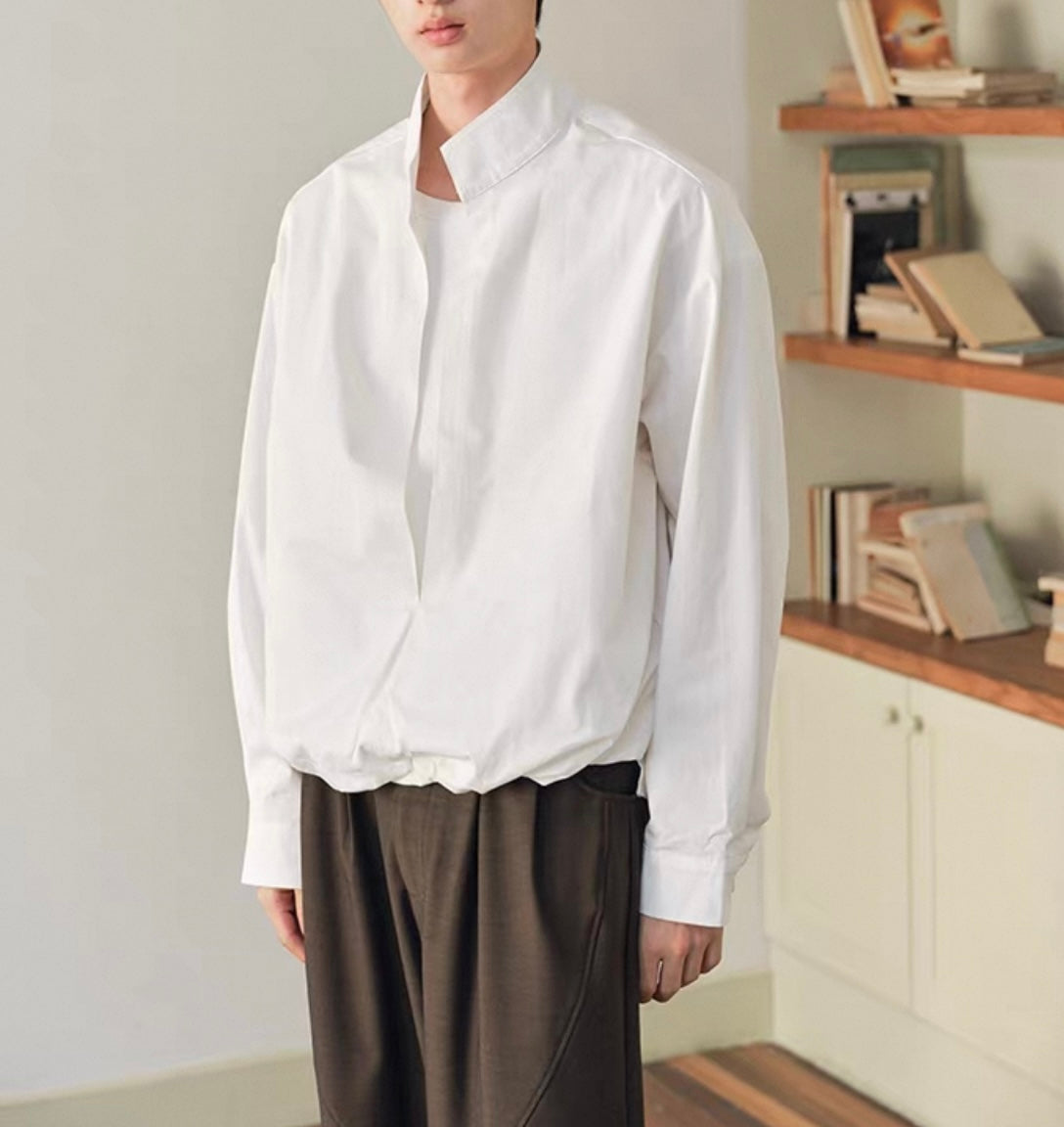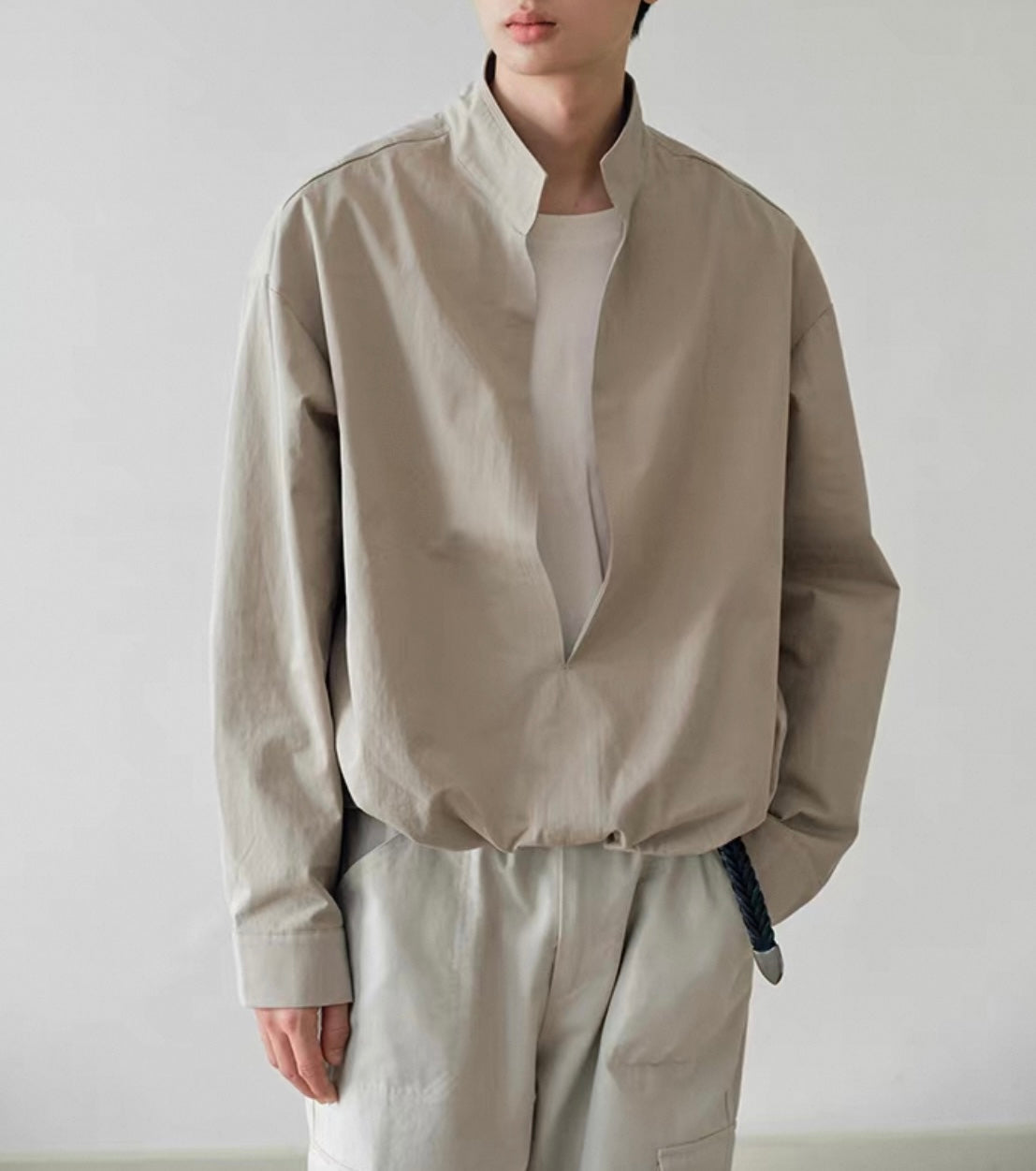 ウェストギャザー スリットネック シャツ N750