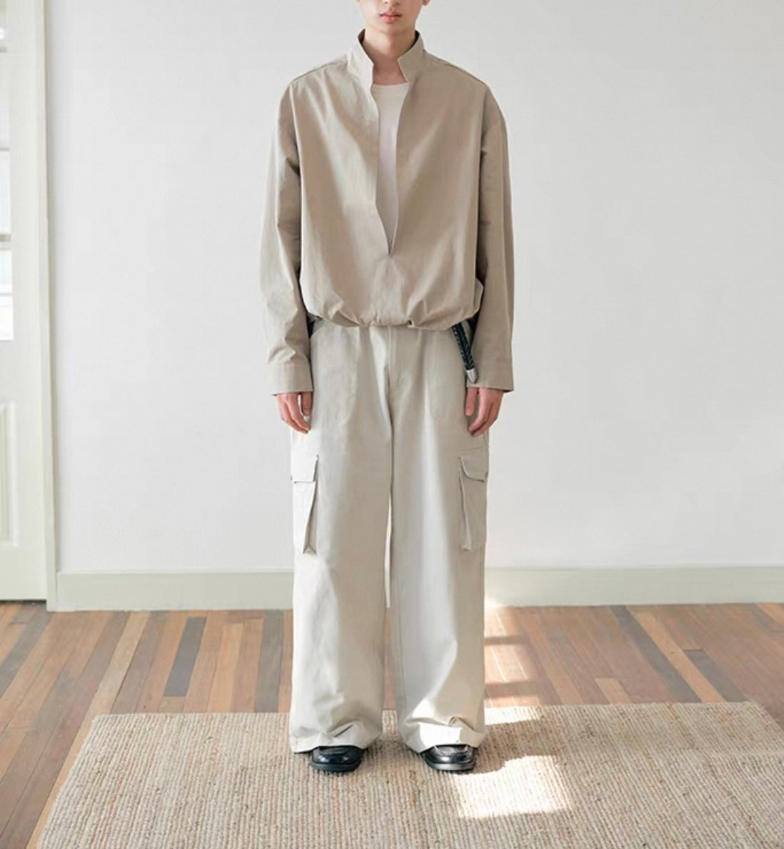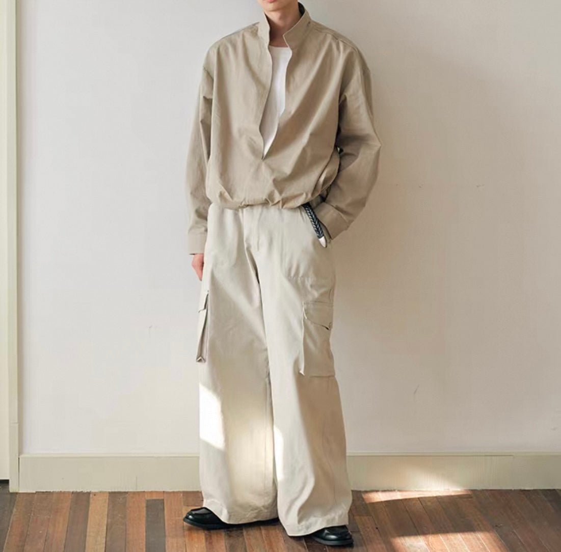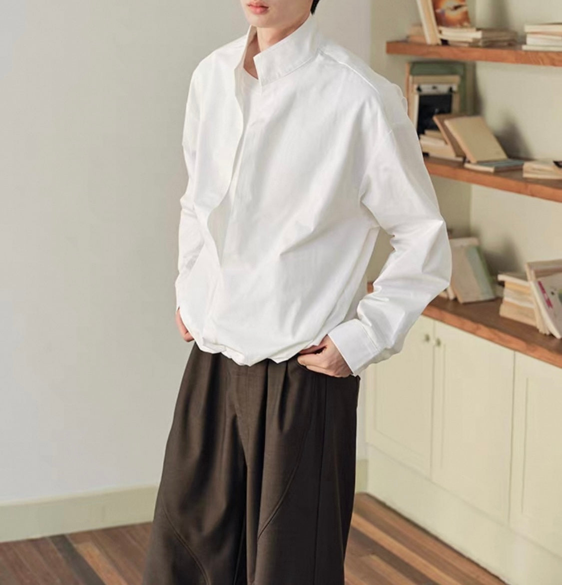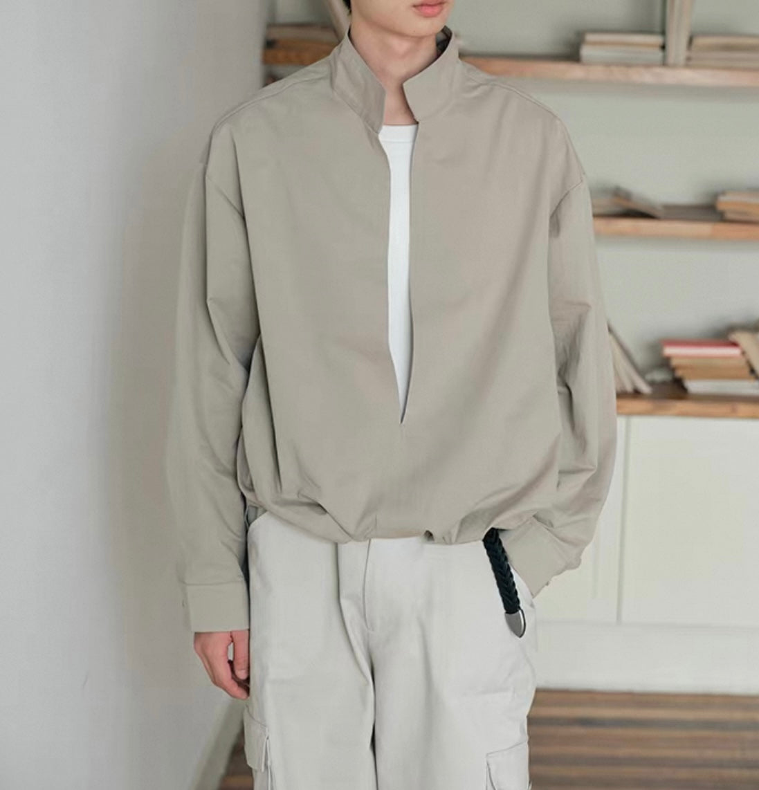 ウェストギャザー スリットネック シャツ N750