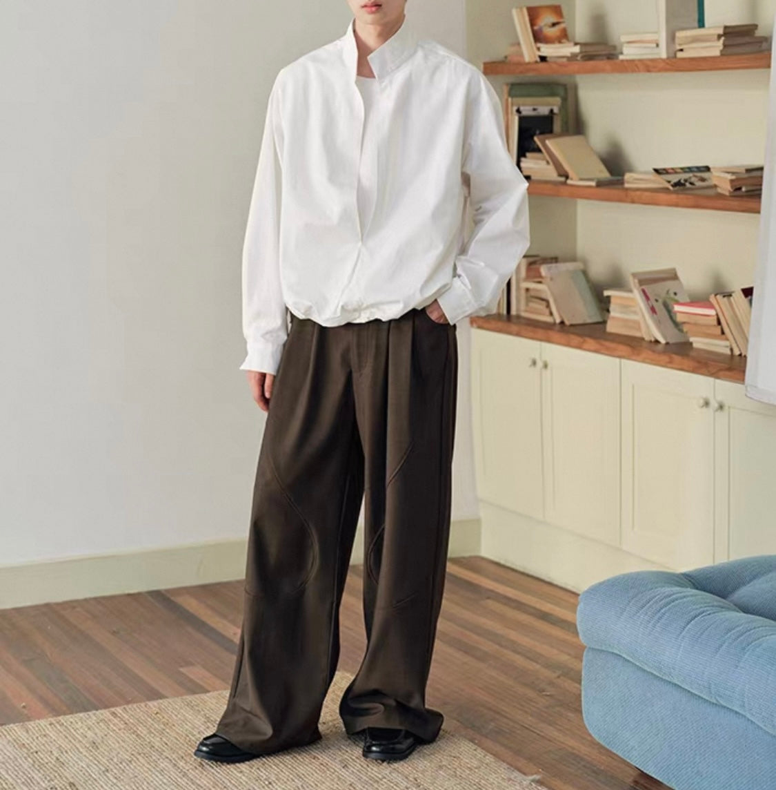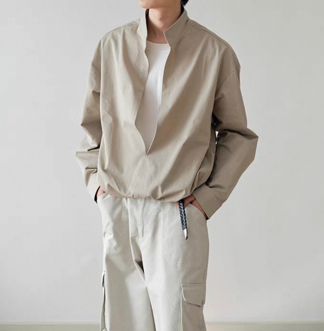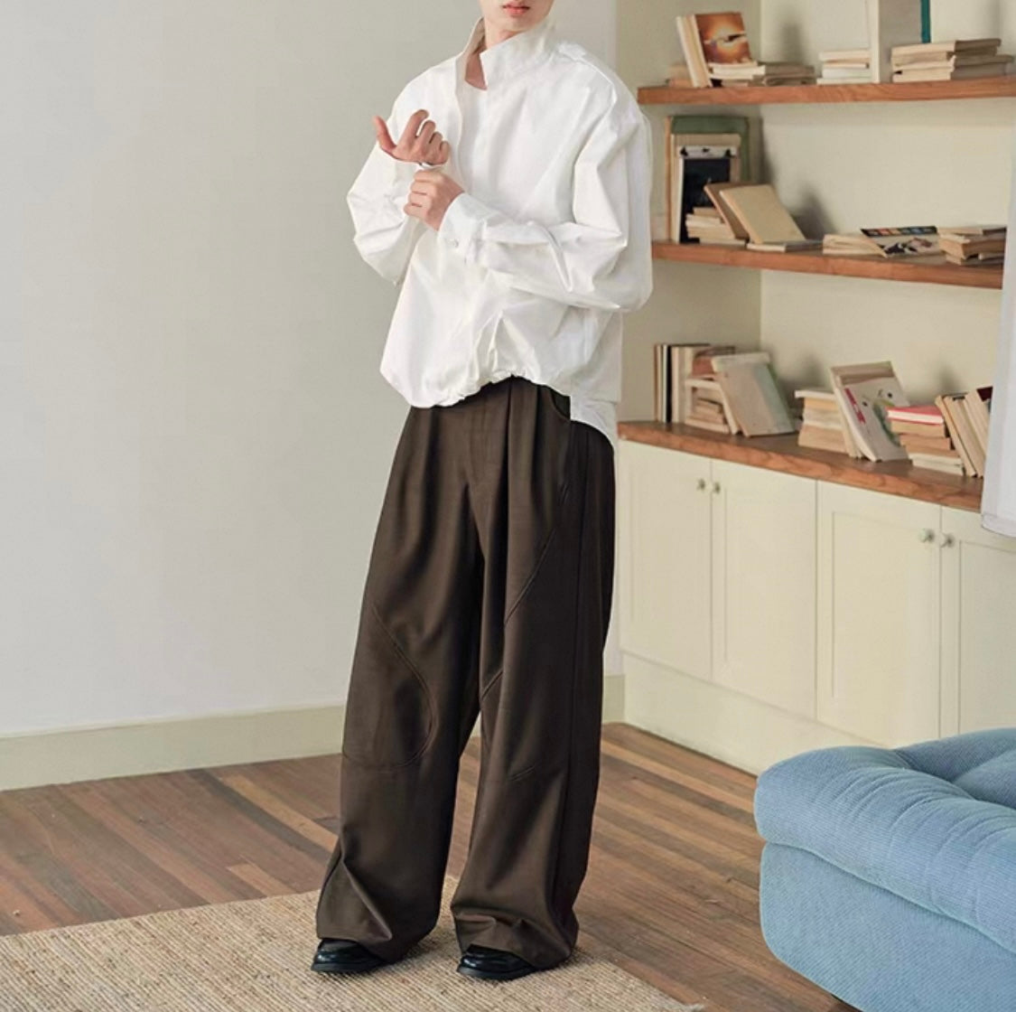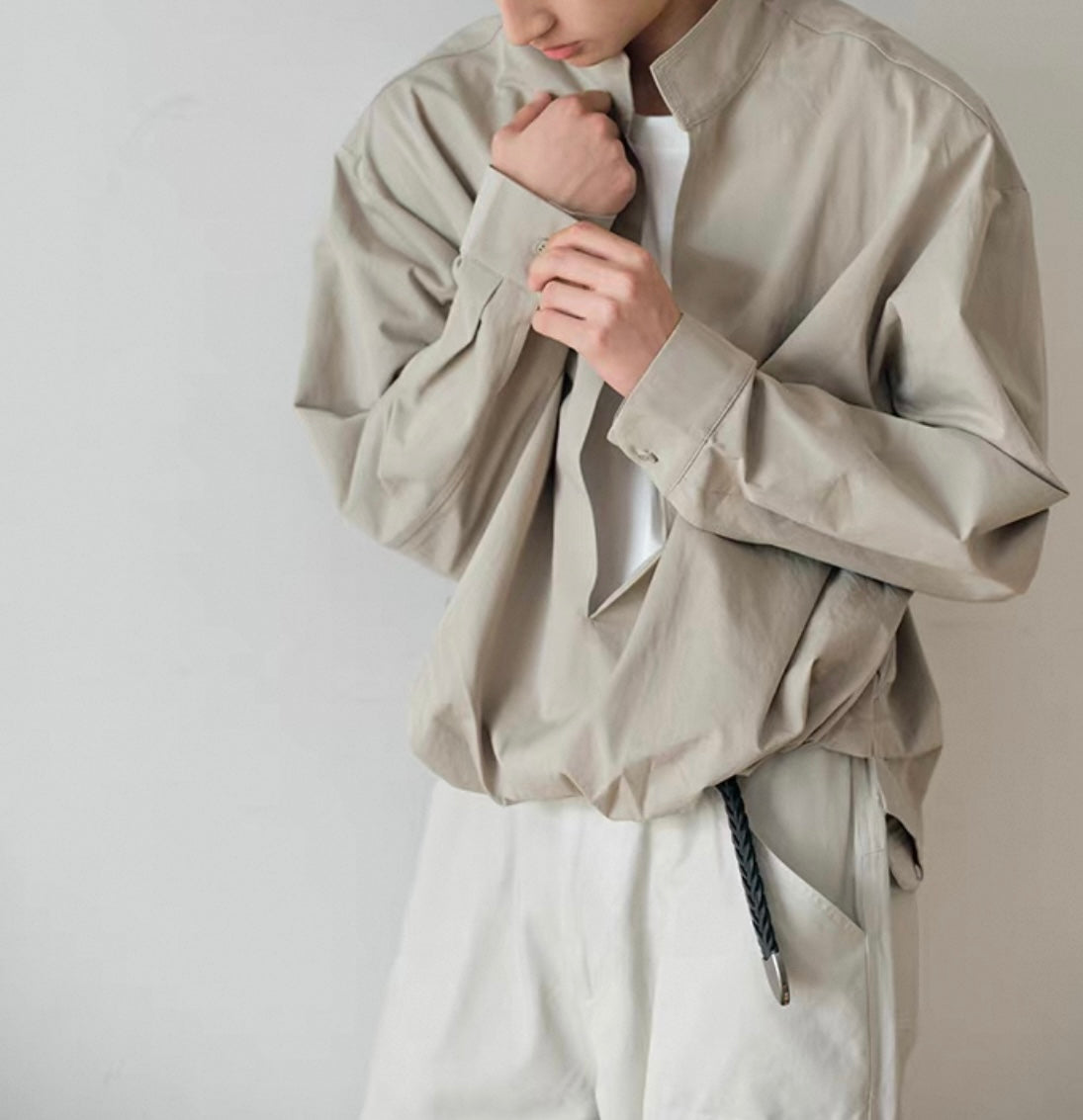 ウェストギャザー スリットネック シャツ N750