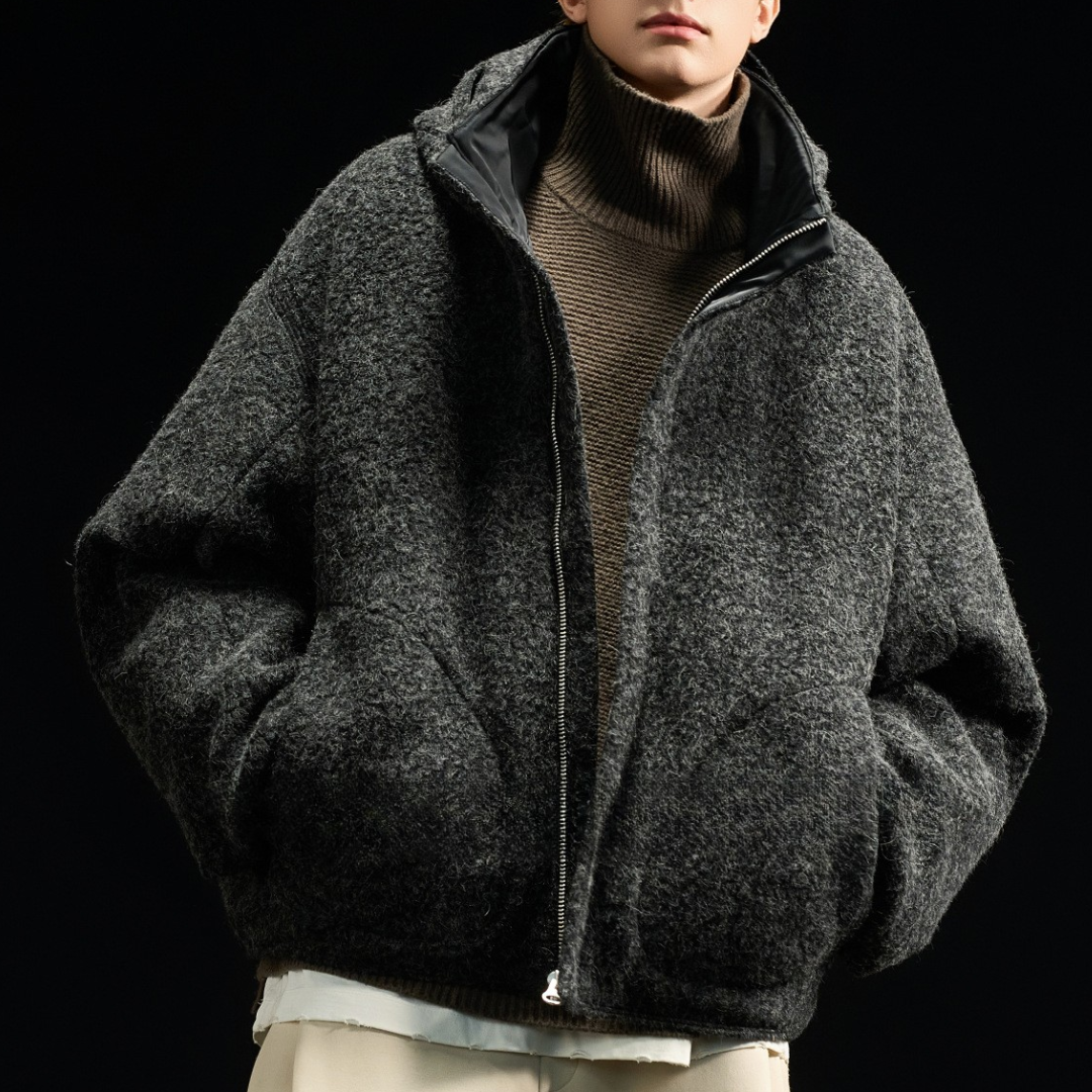 【Y.M.ORIGINAL】ホワイトグースダウン ツイード フードジャケット N845